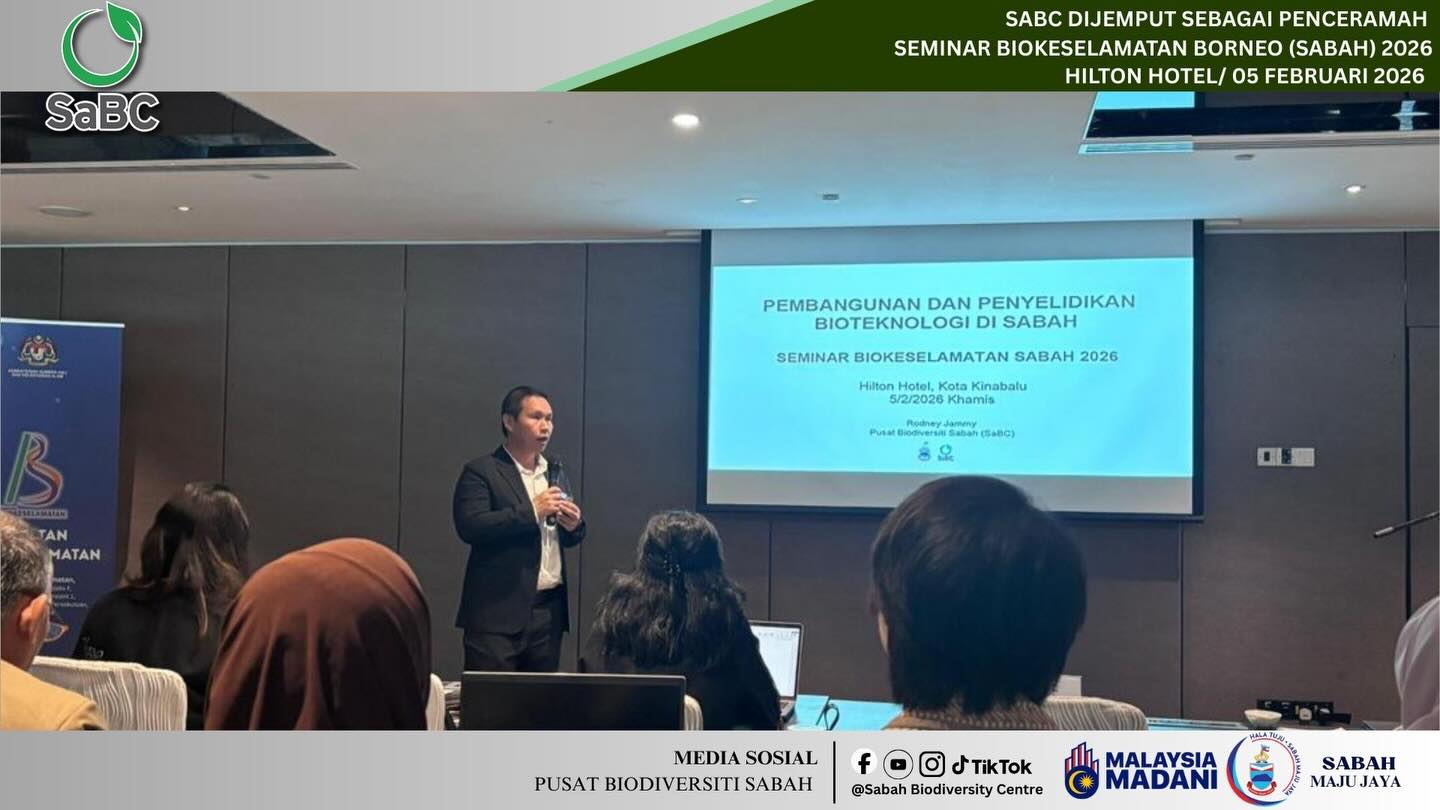 Encik Rodney Jammy, sebagai wakil Pusat Biodiversiti Sabah (SaBC), telah dijemput sebagai penceramah dalam Seminar Biokeselamatan Borneo (Sabah) 2026 yang berlangsung di Kota Kinabalu.